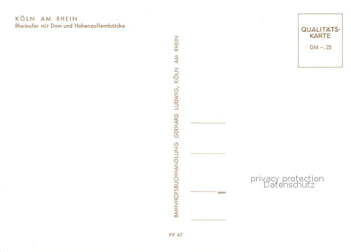 73019385 Koeln Rhein Rheinufer Dom Hohenzollernbruecke postalisch nicht gelaufen Erhaltung siehe scans [NatalD47] KatCode: 11110005315000