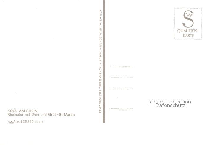73001700 Koeln Rhein Rheinufer Dom und Gross Sankt Martin postalisch nicht gelaufen Erhaltung siehe scans [AndreD76] KatCode: 11110005315000