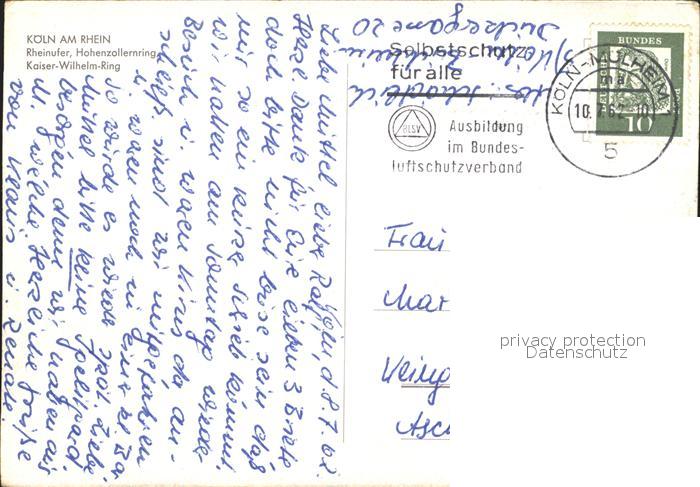 72376736 alte Postkarte Koeln Rhein Rheinufer Hohenzollernring Kaiser-Wilhelm-Ring postalisch gelaufen Erhaltung siehe scans KatCode: 11110005315000