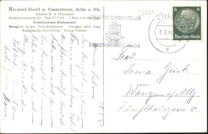 41009195 Koeln Rhein Ringhof Hotel Gaststätte KatCode 11110005315000
