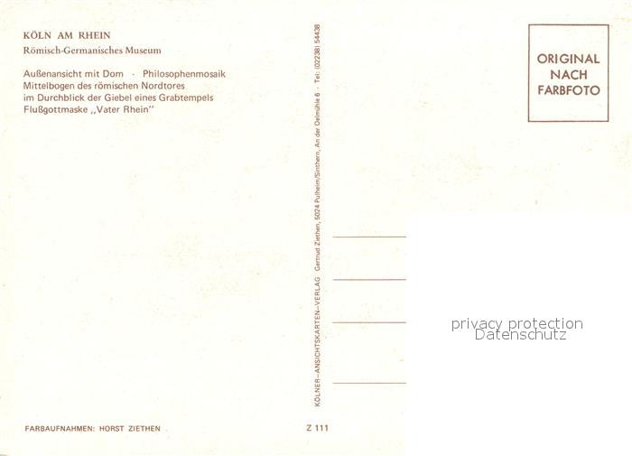 73000869 Koeln Rhein Roemisch Germanisches MuseumMittelbogen des Nordtores Flussgottmaske Vater Rhein postalisch nicht gelaufen Erhaltung siehe scans [AndreD76] KatCode: 11110005315000