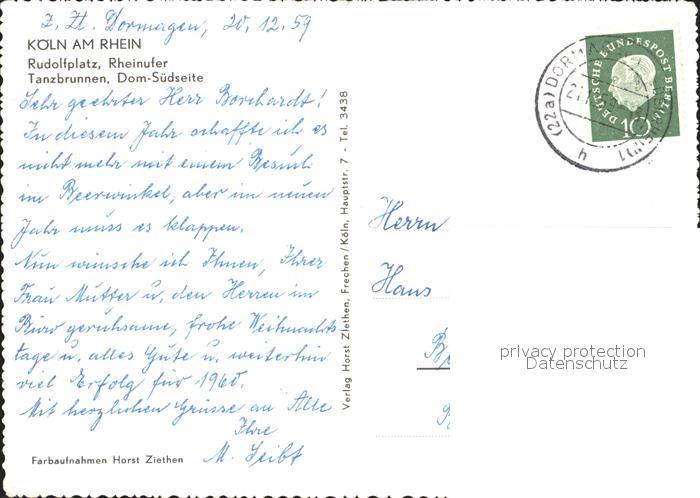 72316694 alte Postkarte Koeln Rhein Rudolfplatz Rheinufer Tanzbrunnen Dom postalisch gelaufen Erhaltung siehe scans KatCode: 11110005315000