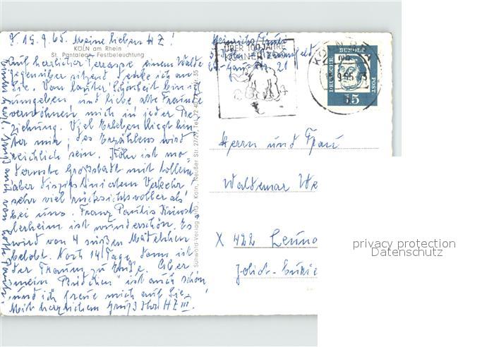 72432063 alte Postkarte Koeln Rhein Sankt Pantaleon Festbeleuchtung postalisch gelaufen Erhaltung siehe scans KatCode: 11110005315000