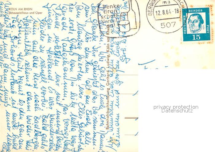72972519 alte Postkarte Koeln Rhein Schauspielhaus Oper postalisch gelaufen Erhaltung siehe scans [PaolaD17] KatCode: 11110005315000