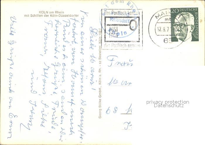 72112751 alte Postkarte Koeln Rhein Schiff bei Nacht postalisch gelaufen Erhaltung siehe scans KatCode: 11110005315000
