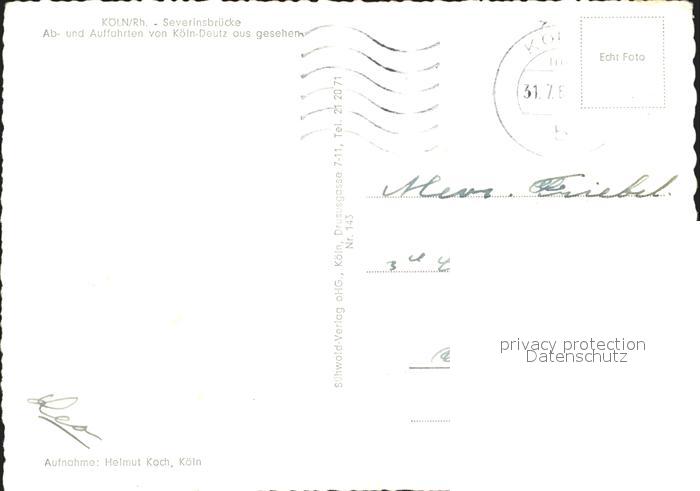 72201688 alte Postkarte Koeln Rhein Severinbruecke postalisch gelaufen Erhaltung siehe scans KatCode: 11110005315000