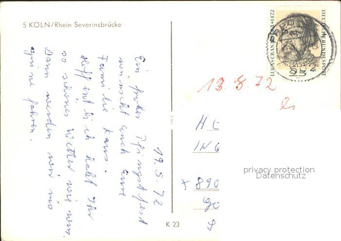 71976547 alte Postkarte Koeln Rhein Severinsbruecke postalisch gelaufen Erhaltung siehe scans KatCode: 11110005315000