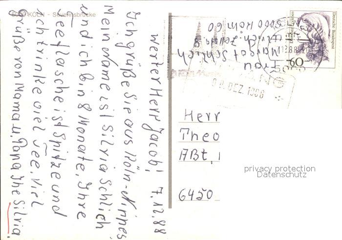 71971124 alte Postkarte Koeln Rhein Severinsbruecke postalisch gelaufen Erhaltung siehe scans KatCode: 11110005315000