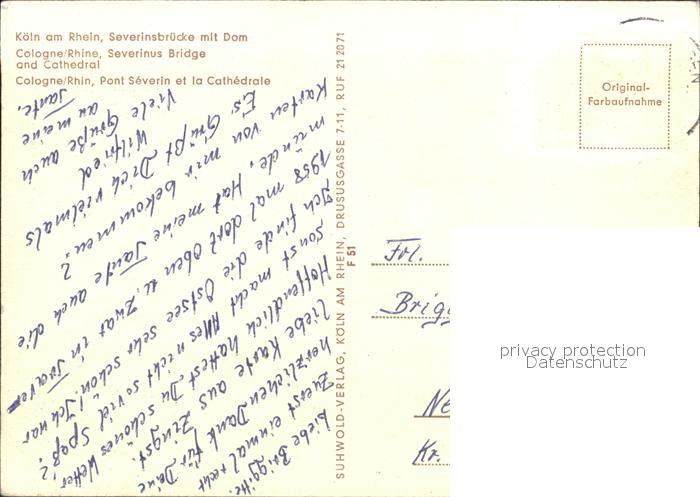72370375 Koeln Rhein Severinsbruecke Dom postalisch nicht gelaufen Erhaltung siehe scans KatCode: 11110005315000