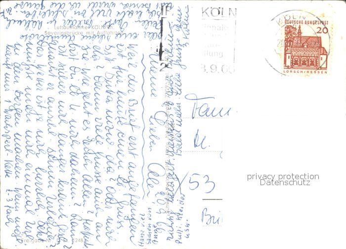 72462487 alte Postkarte Koeln Rhein Severinsbruecke Fliegeraufnahme postalisch gelaufen Erhaltung siehe scans KatCode: 11110005315000