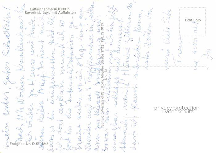 72632421 Koeln Rhein Severinsbruecke mit Auffahrten Fliegeraufnahme postalisch nicht gelaufen Erhaltung siehe scans [FriedD77] KatCode: 11110005315000