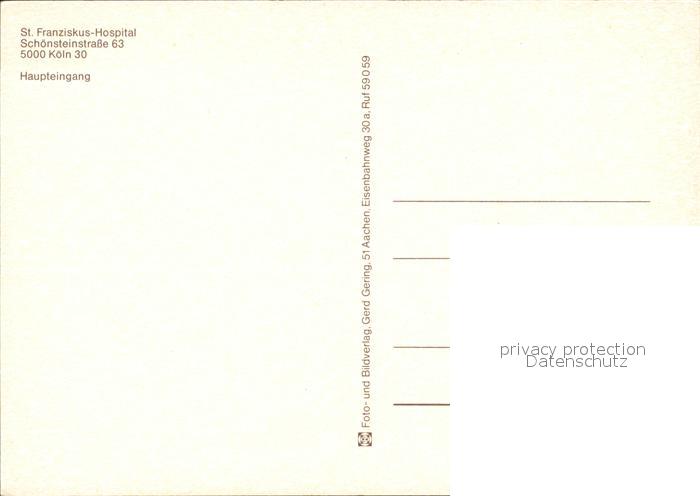 72602593 Koeln Rhein St. Franziskus-Hospital postalisch nicht gelaufen Erhaltung siehe scans [LiesaD40] KatCode: 11110005315000