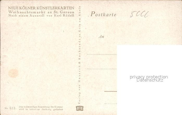 41563834 Koeln Rhein St.Gereon Weihnachtsmarkt Künstlerkarte Karl Rüdell KatCode 11110005315000