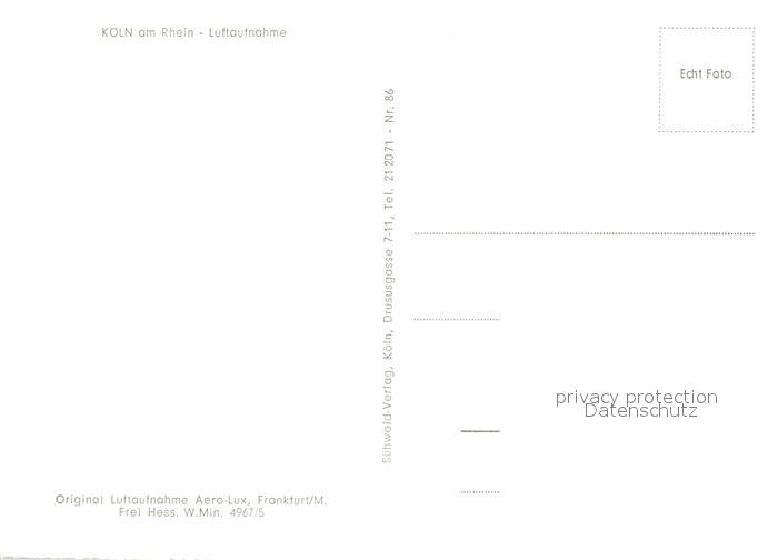 72983402 Koeln Rhein Stadtbild mit Dom Fliegeraufnahme postalisch nicht gelaufen Erhaltung siehe scans [FriedD77] KatCode: 11110005315000