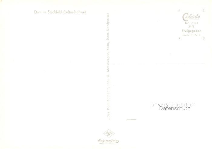 73167339 Koeln Rhein Stadtbild mit Dom Rheinbruecke Fliegeraufnahme postalisch nicht gelaufen Erhaltung siehe scans [FriedD77] KatCode: 11110005315000