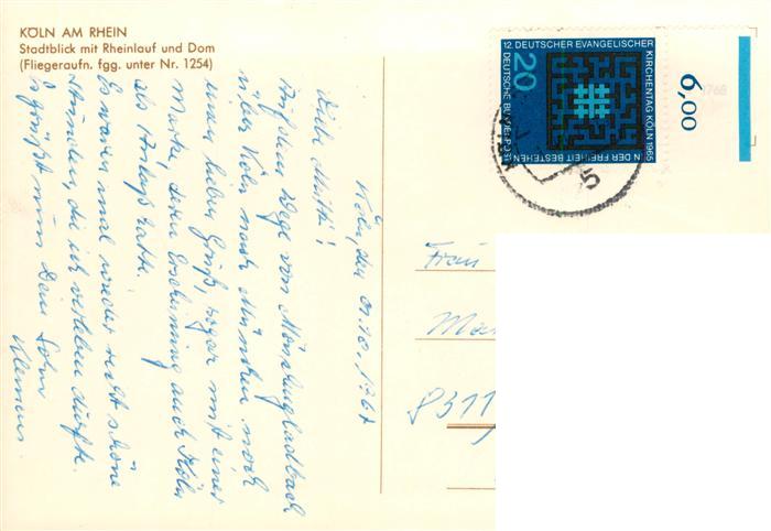 73879002 alte Postkarte Koeln Rhein Stadtblick mit Rheinlauf und Dom Fliegeraufnahme postalisch gelaufen Erhaltung siehe scans [WerneD78] KatCode: 11110005315000