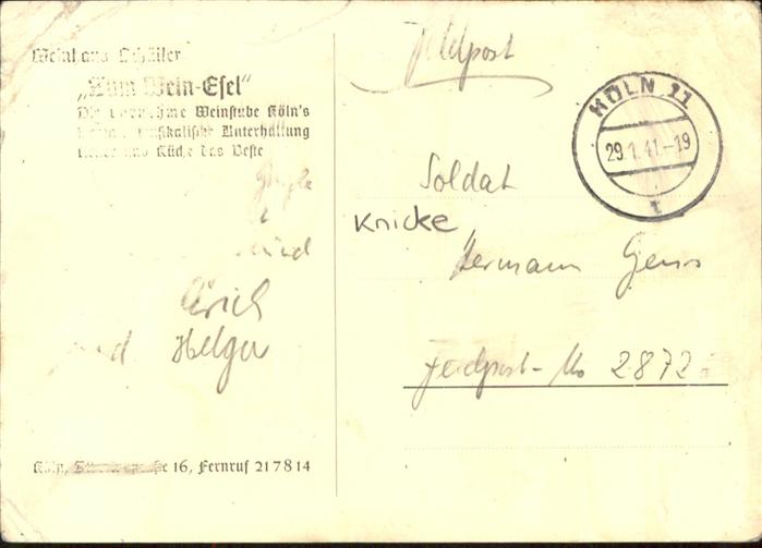 40988346 Koeln Rhein [Stempelabschlag] Zum Wein Esel KatCode 11110005315000