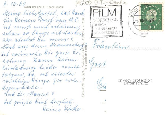 73690849 alte Postkarte Koeln Rhein Tanzbrunnen postalisch gelaufen Erhaltung siehe scans [WerneD78] KatCode: 11110005315000