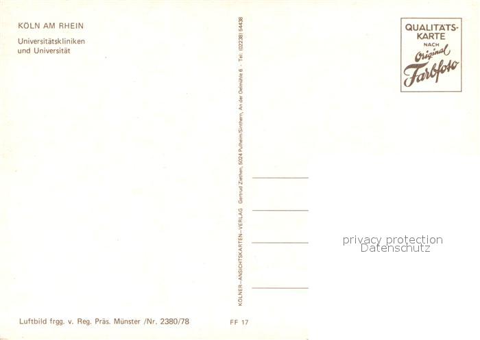 73724966 Koeln Rhein Universitaetskliniken und Universitaet Fliegeraufnahme postalisch nicht gelaufen Erhaltung siehe scans [WerneD78] KatCode: 11110005315000