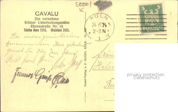 31841230 alte Postkarte Koeln Rhein Unterhaltungsstaette Cavaku postalisch gelaufen Erhaltung siehe scans KatCode: 11110005315000