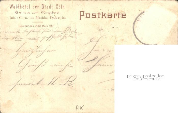 31721179 alte Postkarte Koeln Rhein Waldhotel Koenigsforst postalisch gelaufen Erhaltung siehe scans KatCode: 11110005315000