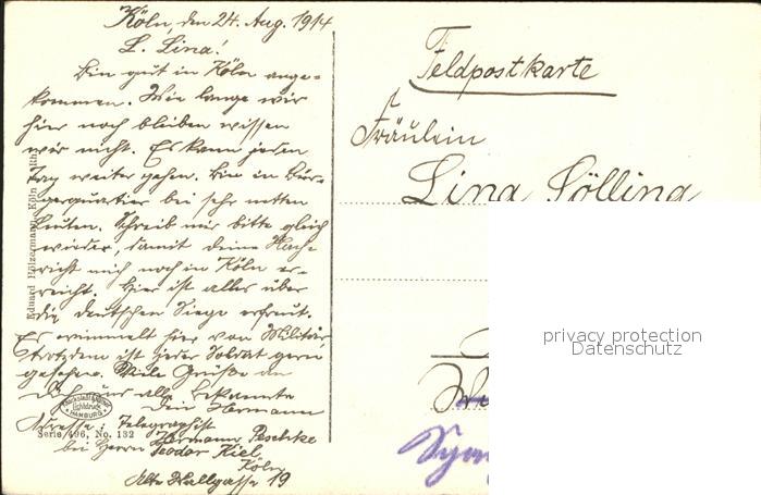 71570530 alte Postkarte Koeln Rhein Wallraffplatz und Blick in die Hohestrasse mit Pferdekutschen postalisch gelaufen Erhaltung siehe scans KatCode: 11110005315000