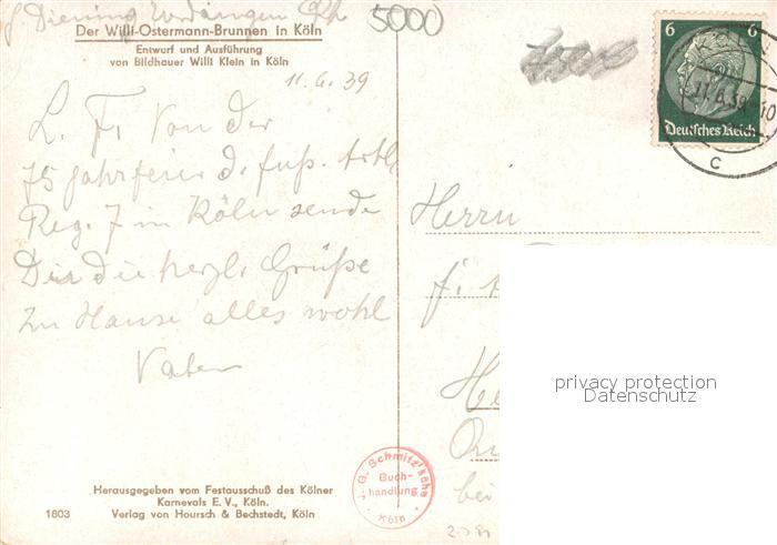 73690839 alte Postkarte Koeln Rhein Willi Ostermann Brunnen Details postalisch gelaufen Erhaltung siehe scans [WerneD78] KatCode: 11110005315000