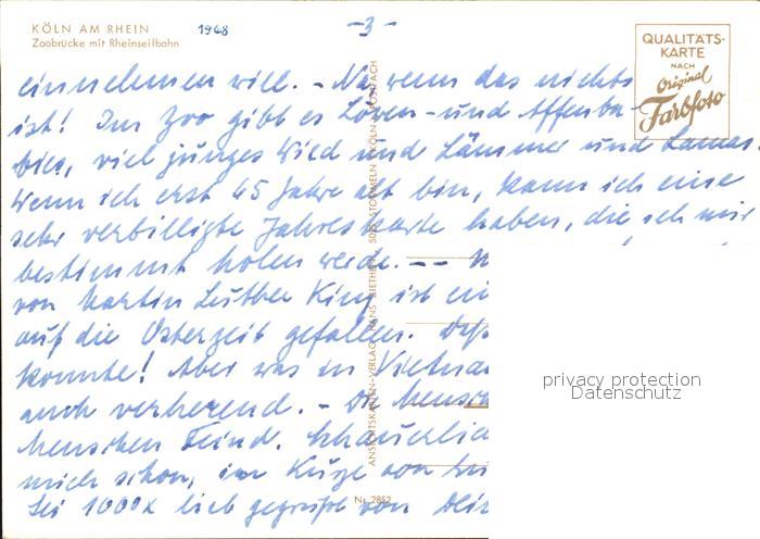72591796 Koeln Rhein Zoobruecke mit Rheinseilbahn postalisch nicht gelaufen Erhaltung siehe scans [WerneD78] KatCode: 11110005315000