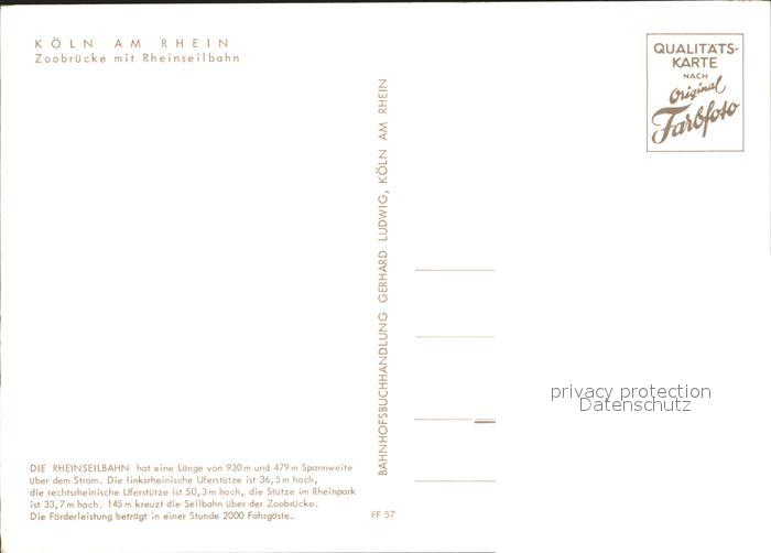 72107000 Koeln Rhein Zoobruecke mit Rheinseilbahn postalisch nicht gelaufen KatCode: 11110005315000