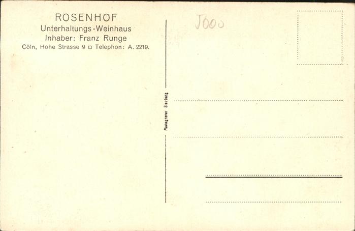 41300447 Koeln Rosenhof Weinhaus Hohe Strasse innen Franz Runge KatCode 11110005315000