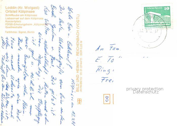 72800605 alte Postkarte Koelpinsee Loddin Schifflaube am Koelpinsee Liebesinsel Konzertplatz FDGB Erholungsheim Goethestrasse postalisch gelaufen Erhaltung siehe scans [FriedD77] KatCode: 11110013059052