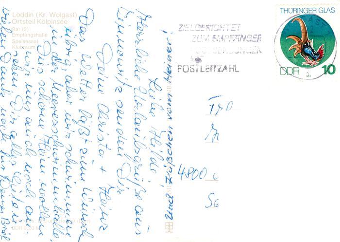 73880960 alte Postkarte Koelpinsee Loddin Usedom FDGB Erholungsheim Koelpinshoeh Bar Empfangshalle Speisesaal Klubraum postalisch gelaufen Erhaltung siehe scans [FriedD77] KatCode: 11110013059052