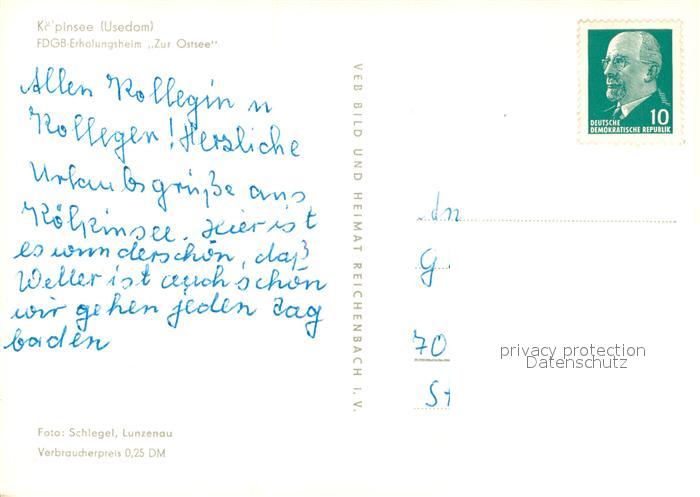 73616507 alte Postkarte Koelpinsee Usedom FDGB Erholungsheim Zur Ostsee postalisch gelaufen Erhaltung siehe scans [WerneD78] KatCode: 11110013059097