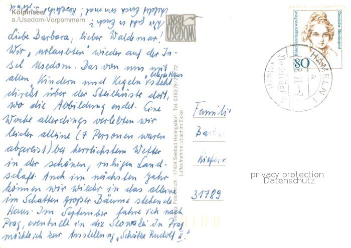 73668151 alte Postkarte Koelpinsee Usedom Fliegeraufnahme postalisch gelaufen Erhaltung siehe scans [WerneD78] KatCode: 11110013059097