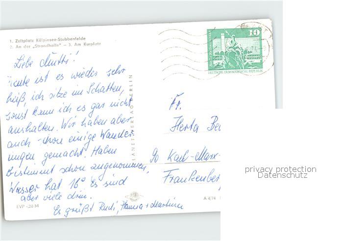 72383712 alte Postkarte Koelpinsee Usedom Zeltplatz Strandhalle Kurplatz postalisch gelaufen Erhaltung siehe scans KatCode: 11110013059097