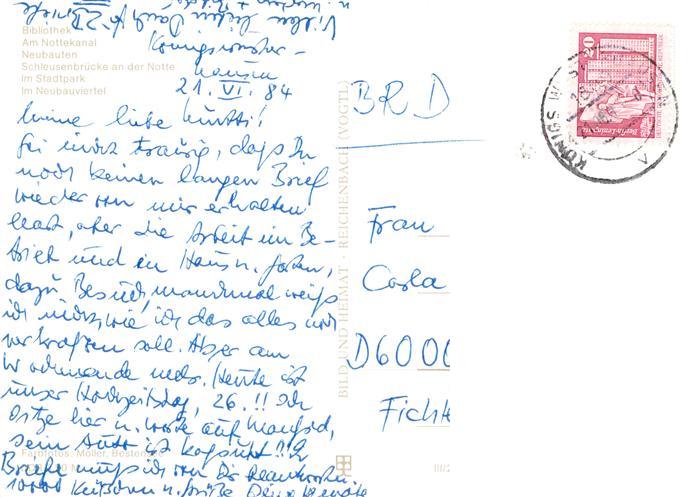 73876662 alte Postkarte Koenigs-Wusterhausen Bibliothek Am Nottekanal Schleusenbruecke an der Notte Im Stadtpark Im Neubauviertel postalisch gelaufen Erhaltung siehe scans [WerneD78] KatCode: 11110012061260