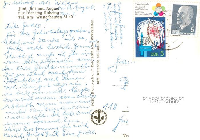73870881 alte Postkarte Koenigs-Wusterhausen HOG Seeschloesschen Neue Muehle Gastraeume postalisch gelaufen Erhaltung siehe scans [WerneD78] KatCode: 11110012061260