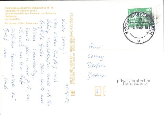 72059079 alte Postkarte Koenigs-Wusterhausen JagdschlossKaufhalle,Potsdamerstrasse,Neue Muehle postalisch gelaufen Erhaltung siehe scans KatCode: 11110012061260