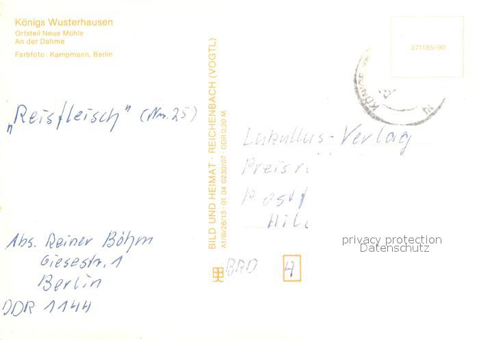 73017880 alte Postkarte Koenigs-Wusterhausen OT Neue Muehle Dahmepartie postalisch gelaufen Erhaltung siehe scans [WerneD78] KatCode: 11110012061260