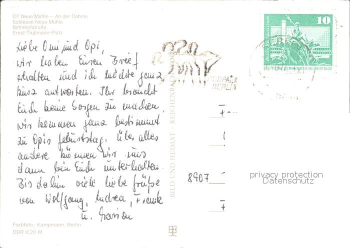 72337176 alte Postkarte Koenigs-Wusterhausen OT Neue Muehle Schleuse Dahme Bahnhofstrasse Ernst Thaelmann Platz postalisch gelaufen Erhaltung siehe scans KatCode: 11110012061260