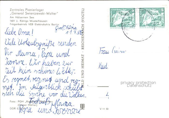 72273308 alte Postkarte Koenigs-Wusterhausen Pionierlager General Swierczewski Walter Am Hoelzernen See postalisch gelaufen Erhaltung siehe scans KatCode: 11110012061260