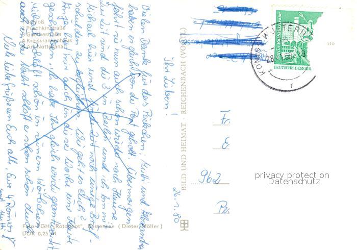 73134394 alte Postkarte Koenigs-Wusterhausen Schloss Puschkinstrasse Goethestrasse Kreiskrankenhaus Nottekanal postalisch gelaufen Erhaltung siehe scans [FriedD77] KatCode: 11110012061260