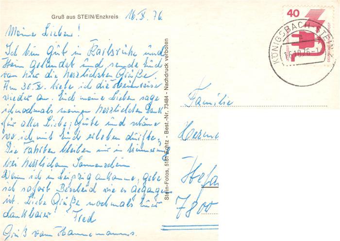 73872085 alte Postkarte Koenigsbach-Stein Panorama postalisch gelaufen Erhaltung siehe scans [FriedD77] KatCode: 11110008236076