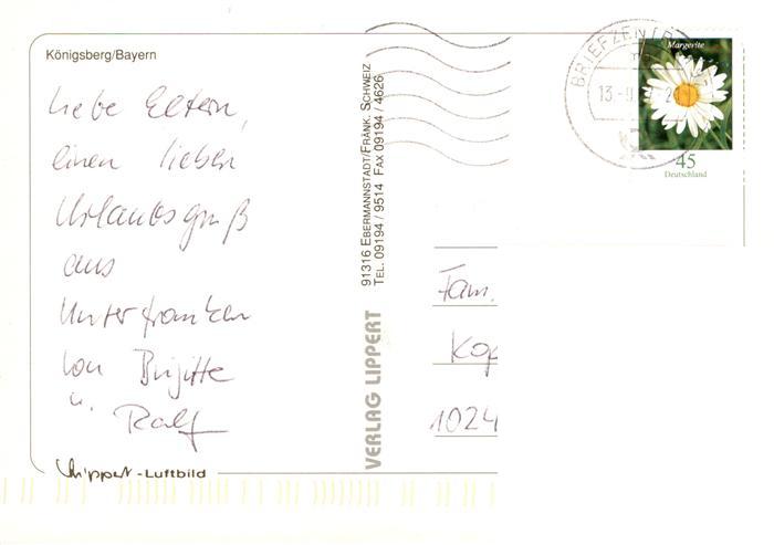 73904404 alte Postkarte Koenigsberg Bayern Fliegeraufnahme mit Kirche postalisch gelaufen Erhaltung siehe scans [WerneD78] KatCode: 11110009674164