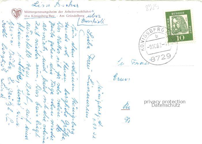 74054943 alte Postkarte Koenigsberg Bayern Muettergenesungsheim der AWO postalisch gelaufen Erhaltung siehe scans [WerneD78] KatCode: 11110009674164