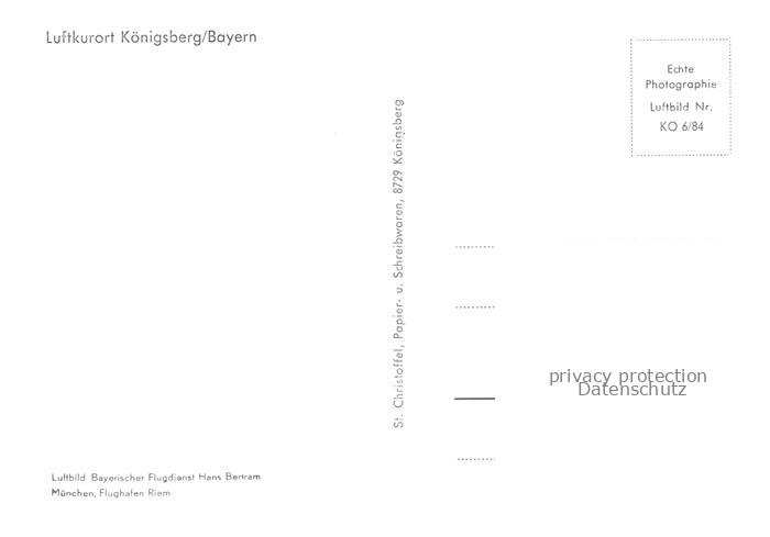 34144489 Koenigsberg Hassberge Bayern Fliegeraufnahme postalisch nicht gelaufen Erhaltung siehe scans [WerneD78] KatCode: 11110009674164