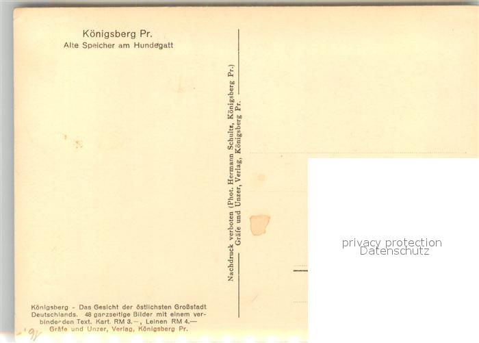 Koenigsberg Ostpreussen Alte Speicher am Hundegatt postalisch nicht gelaufen Erhaltung siehe scans [LiesaD40]