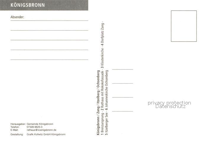 73181384 Koenigsbronn Wuerttemberg Brenzursprung Rathaus Klosterkirche Dorfplatz Zang Itzelberger See Johanneskirche Ochsenberg postalisch nicht gelaufen Erhaltung siehe scans [WerneD78] KatCode: 11110008135025