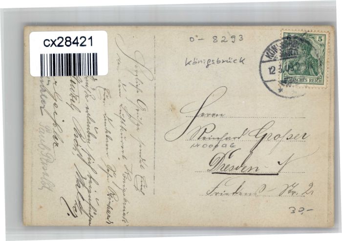 30910516 alte Postkarte Koenigsbrueck tempelabschlag] Soldaten Fahrrad x postalisch gelaufen KatCode: 11110014292260
