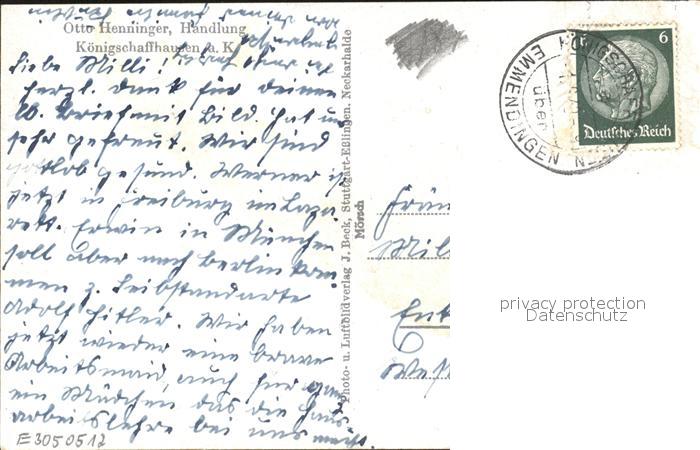 32028202 alte Postkarte Koenigschaffhausen Otto Henninger Handlung postalisch gelaufen Erhaltung siehe scans KatCode: 11110008316012